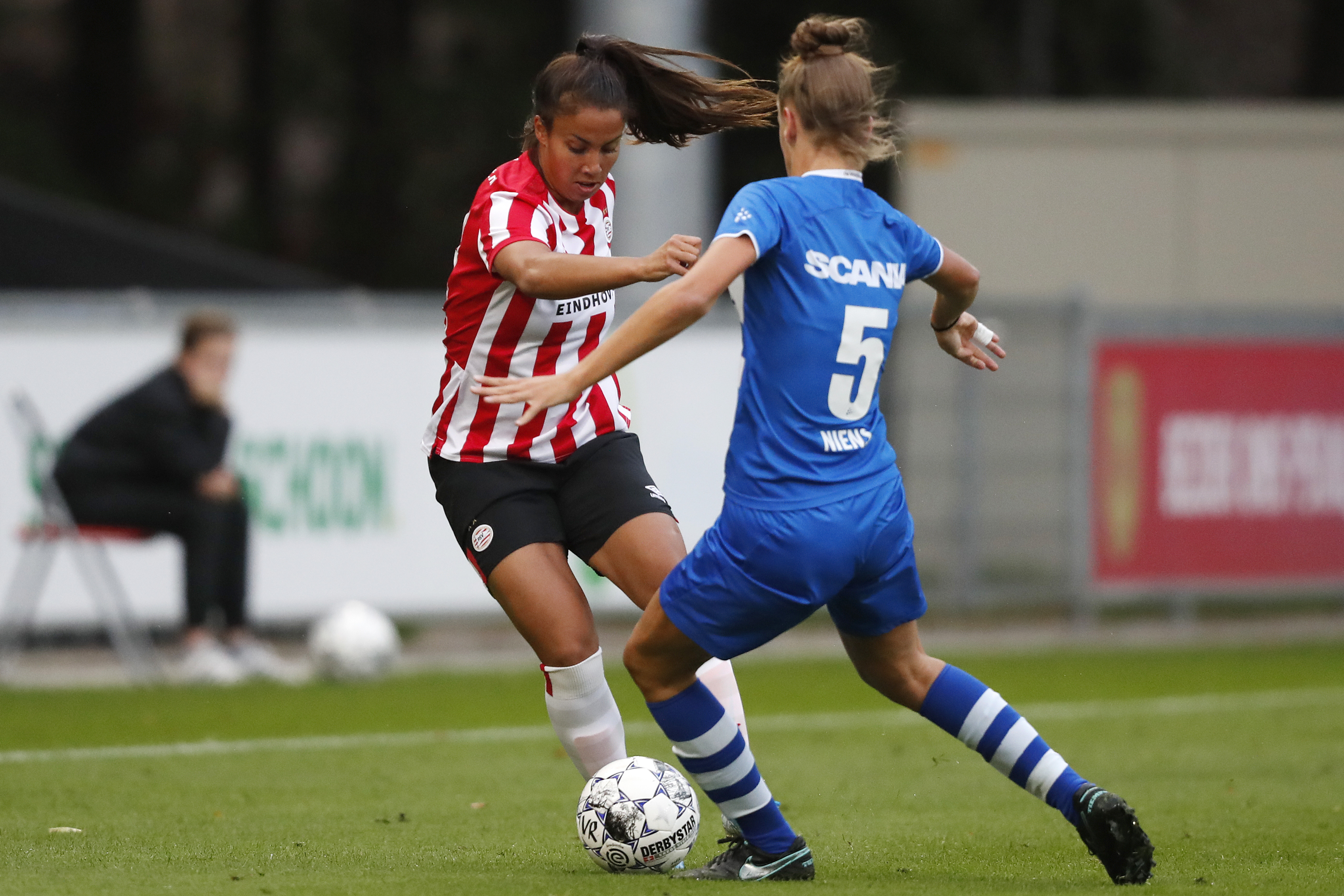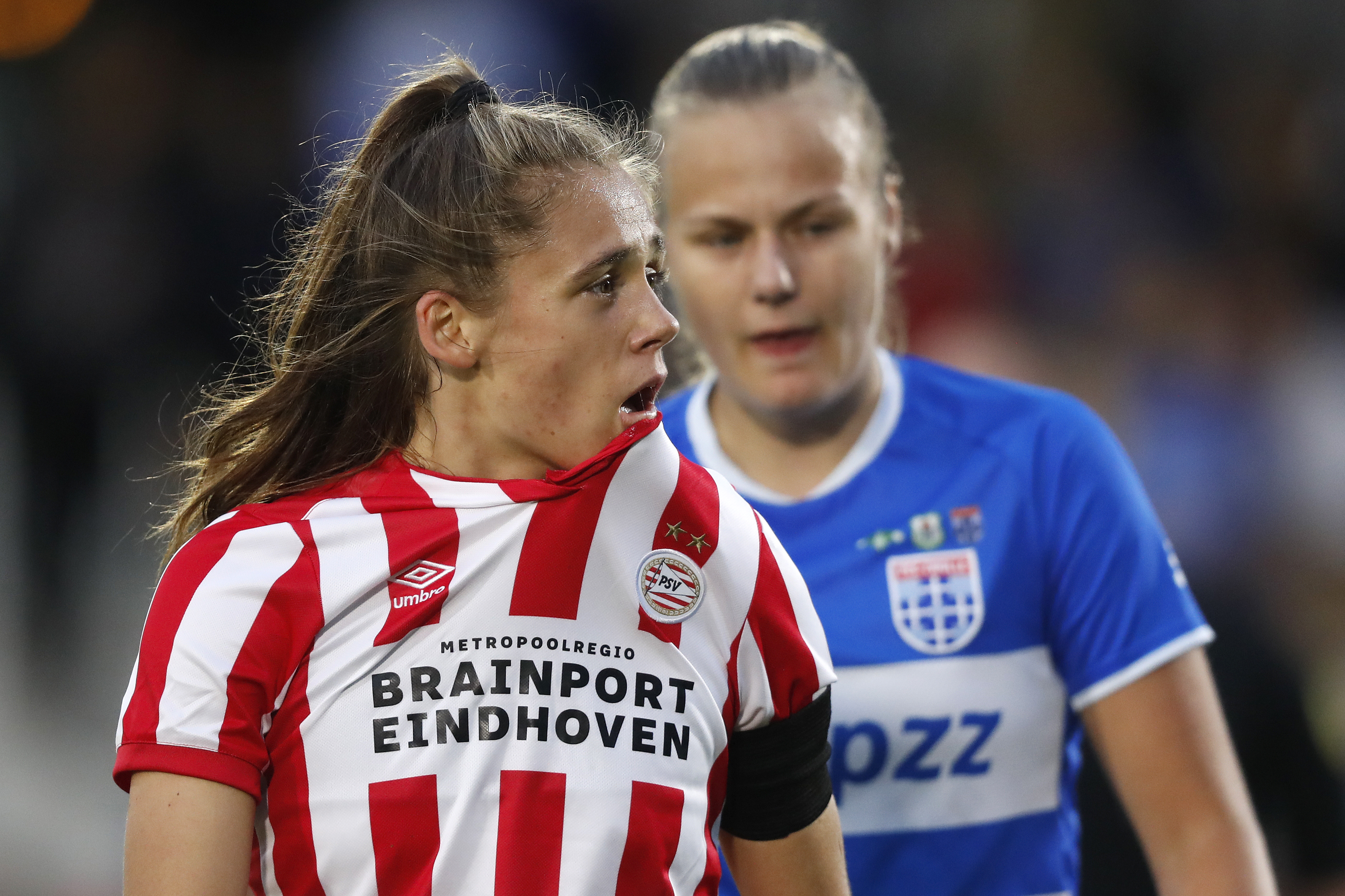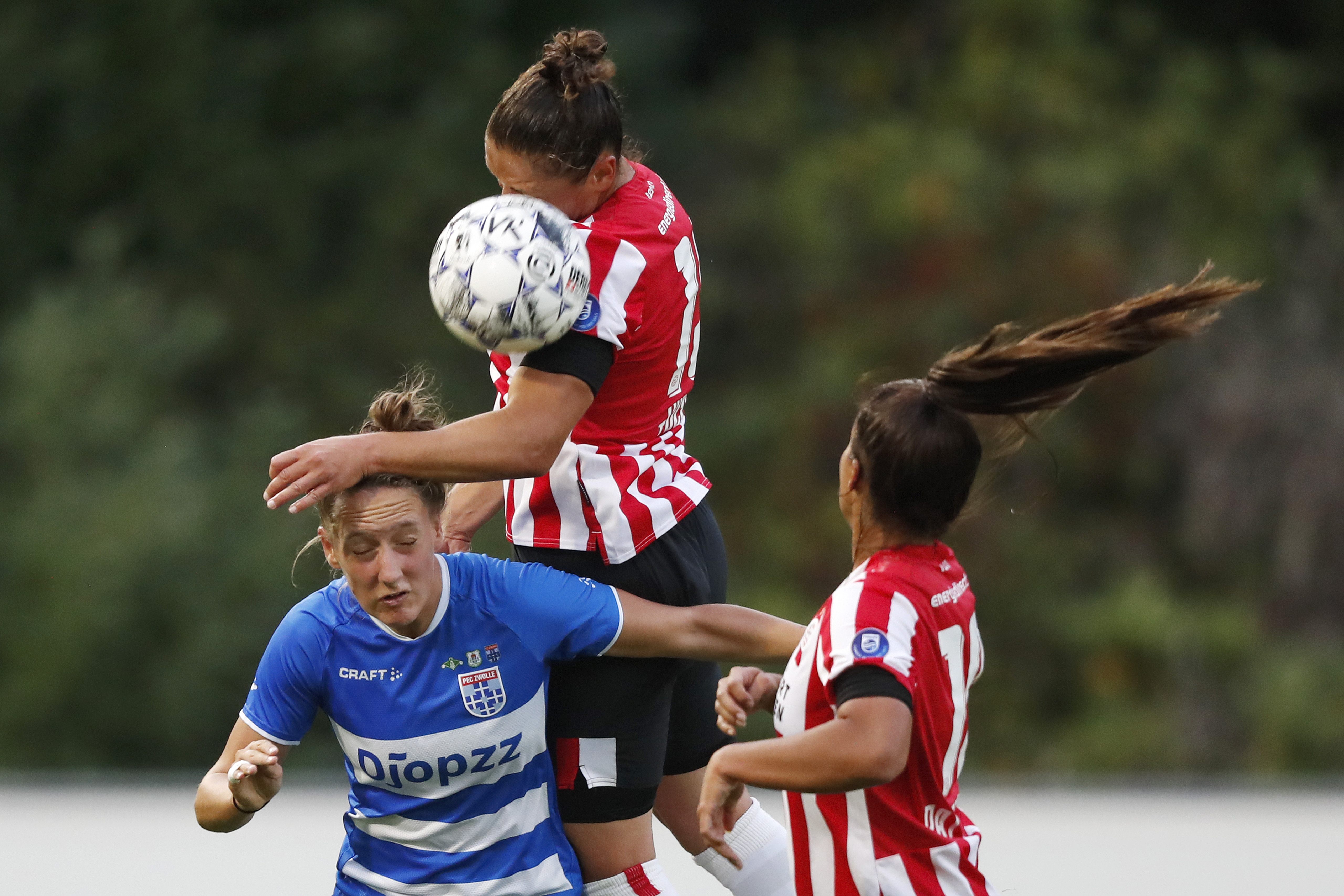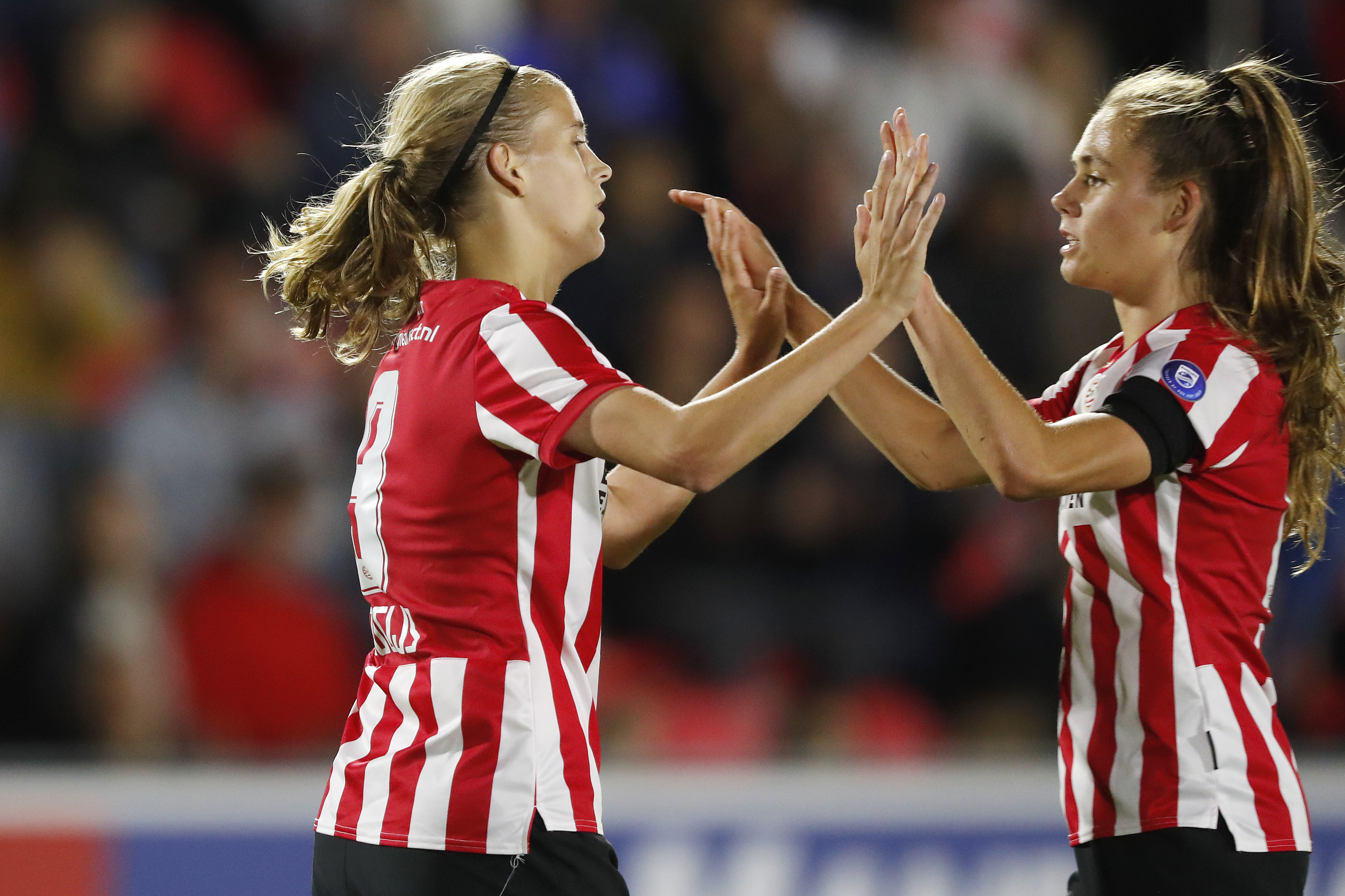 De mooiste beelden van de eerste thuiswedstrijd in de competitie van PSV Vrouwen. De ploeg won ruim van PEC Zwolle (4-0).