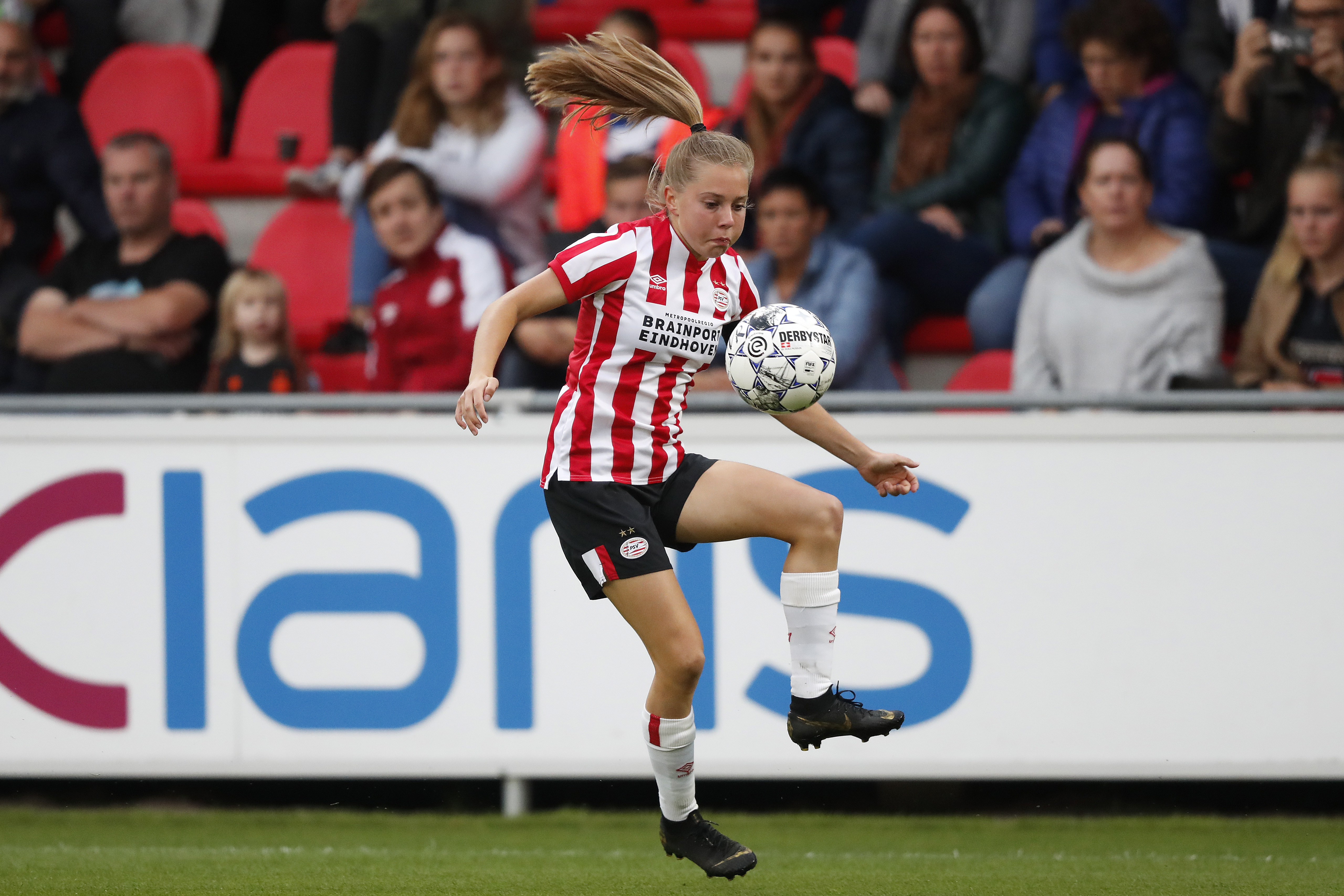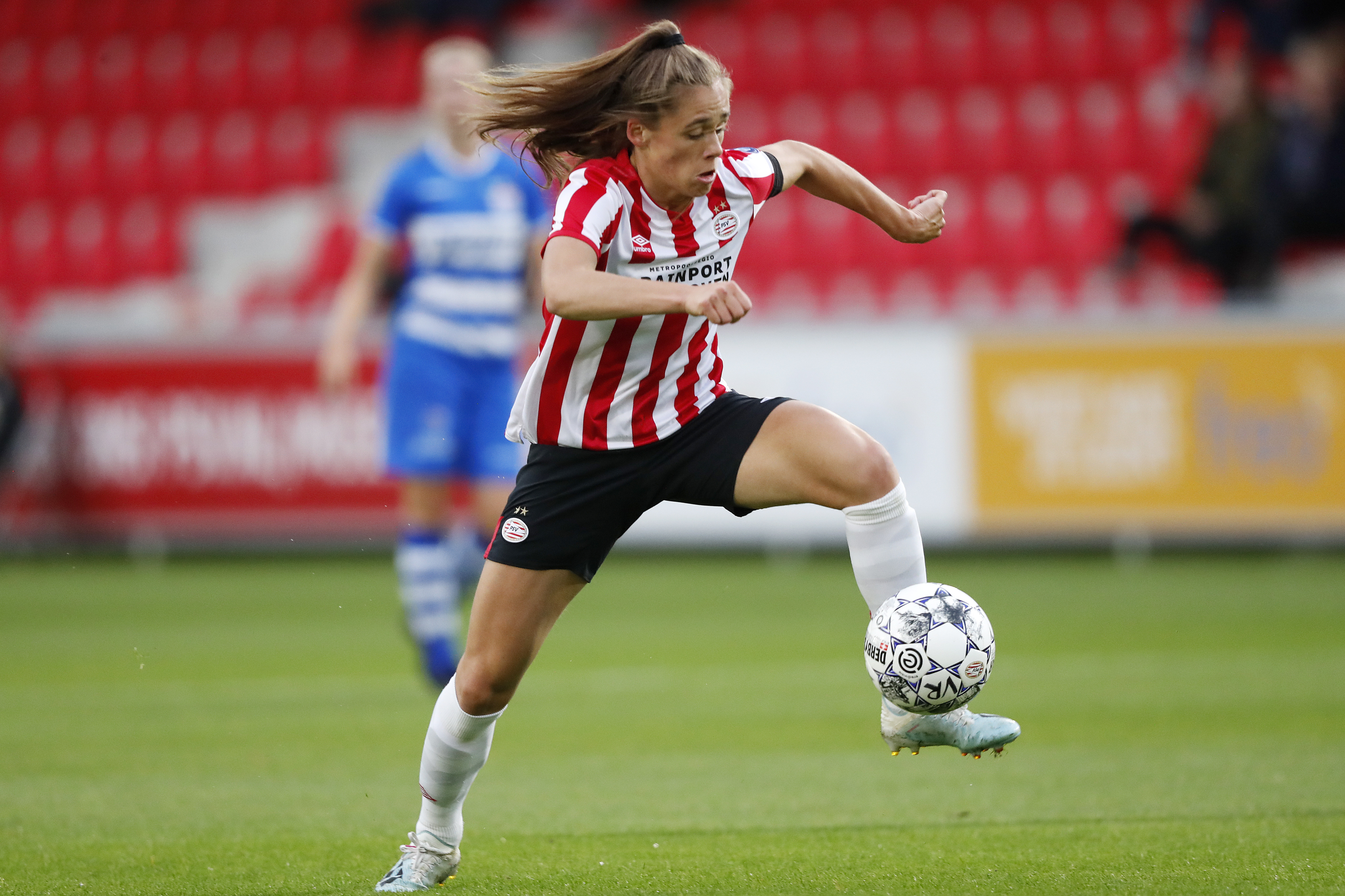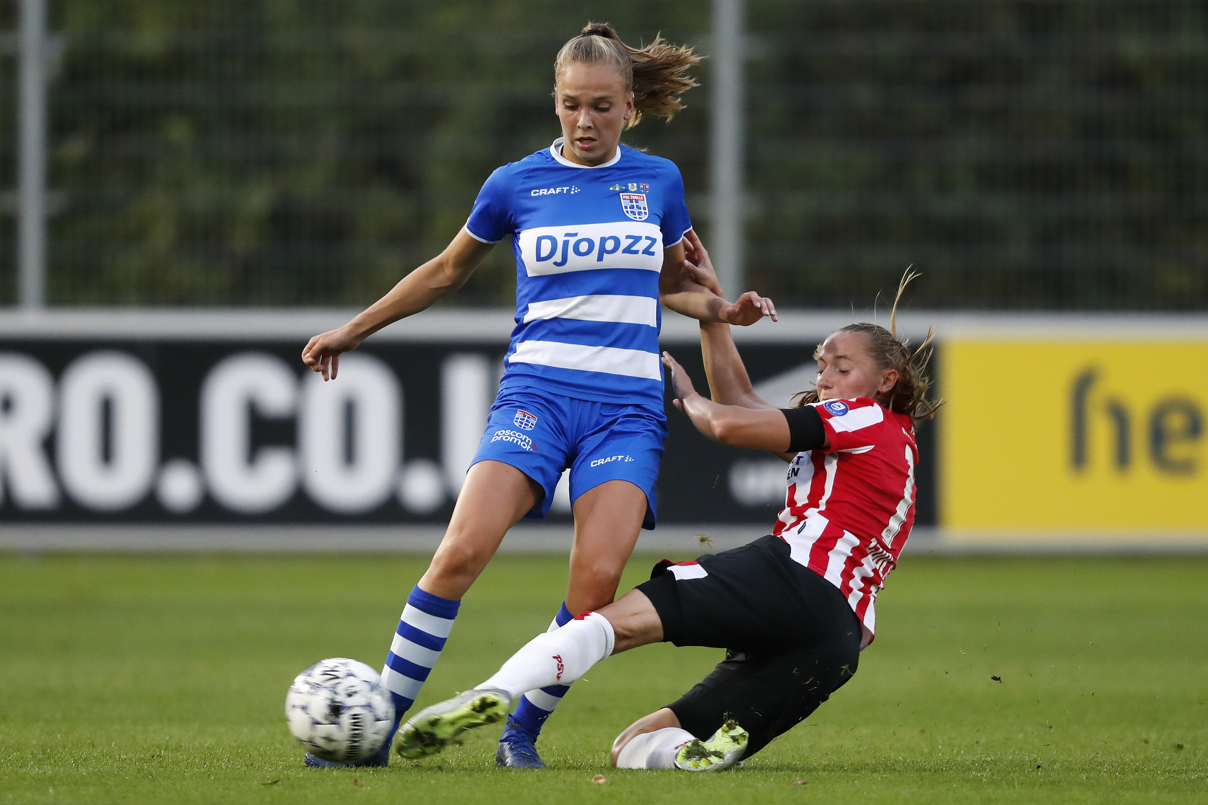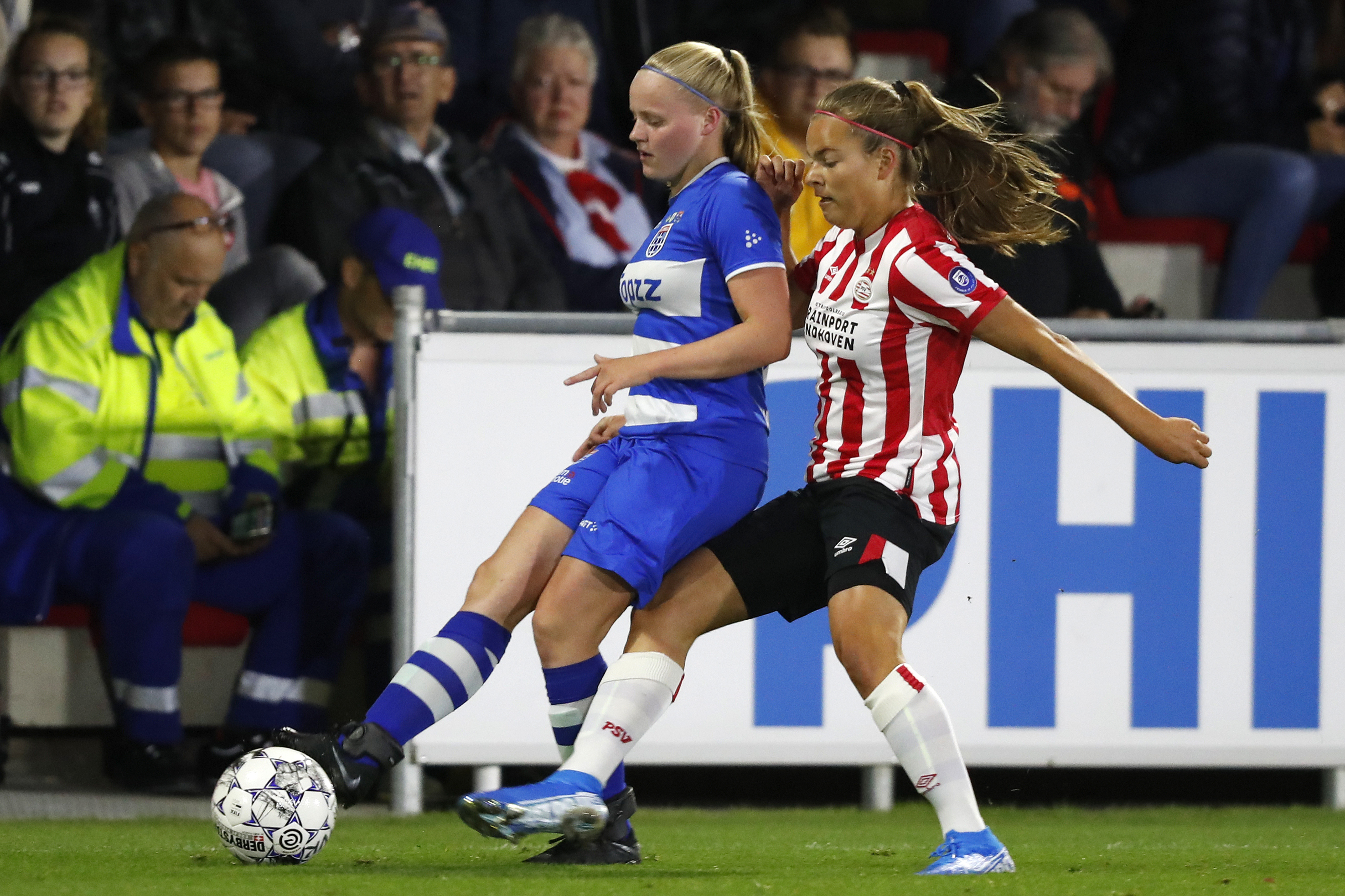 De mooiste beelden van de eerste thuiswedstrijd in de competitie van PSV Vrouwen. De ploeg won ruim van PEC Zwolle (4-0).