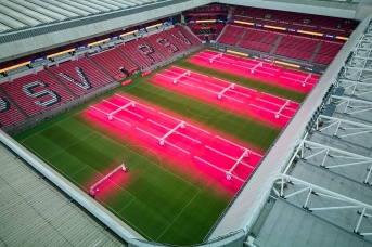 Een nieuw belichtingssysteem in het Philips Stadion moet ervoor zorgen dat de grasmat onder ideale omstandigheden groeit en herstelt. PSV is de eerste club die gebruik maakt van het systeem met een speciaal ontwikkelde combinatie van energiezuinige Philips LED- en infraroodlampen en is ontwikkeld door Signify. Ook De Enk Groen & Golf, VTI Horst en Westhoven Agro Advies hebben een rol in de succesvolle toepassing van de nieuwe belichting.