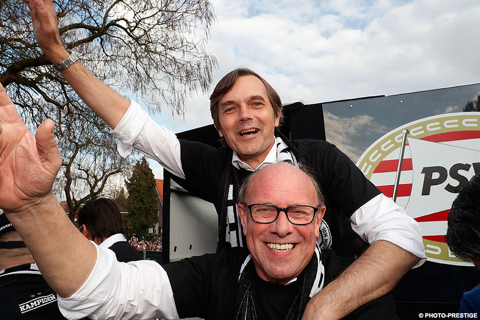 Op de route van de platte kar, die onder meer rijdt via de Mathildelaan, de Emmasingel en de Keizersgracht, staan vele duizenden fans de kampioenen op te wachten. Met vuurwerk, PSV-muziek en heel veel support vieren zij de 24e landstitel van PSV. Om ongeveer 18.45 uur komt de platte kar aan bij het Stadhuisplein, waarna rond 19.00 uur aanvoerder Marco van Ginkel de schaal aan de tienduizenden fans zal tonen. Eindhoven liep in de middag al helemaal vol en kijkt reikhalzend uit naar het grote moment op het plein.
