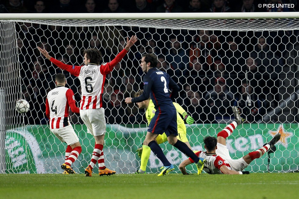 PSV hield woensdagavond de hoop op de volgende ronde van de UEFA Champions League levend door met tien man de nul te houden in eigen huis tegen Atlético Madrid. Een fotoverslag van deze wedstrijd.