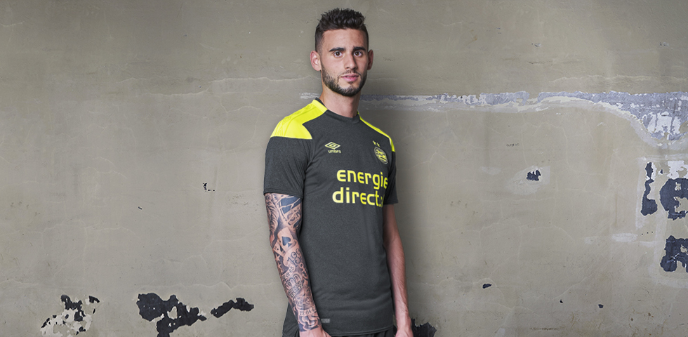 Het grijze PSV Away Kit 2017-2018 is het eerste PSV-shirt dat is voorzien van een gemêleerd patroon op de voor- en achterzijde. Eigentijds en modieus. Kenmerkend zijn verder de felle fluoriserend gele accenten op de mouwen, kraag en logo’s van het tricot. Ook de donkerkleurige broek en sokken zijn voorzien van de fluoriserend gele accenten.