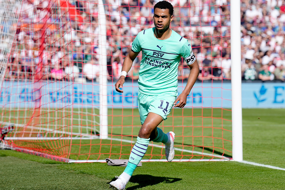 PSV beloonde zichzelf snel na al deze pogingen. Het was Gakpo die het deed. De ploeg profiteerde van balverlies van Feyenoord. Veerman gaf een heerlijke pass op Gakpo die vervolgens de sprint inzette en met een scherp schot de voorsprong pakte. Daarmee nam hij zijn 20e doelpunt van het seizoen voor zijn rekening. De thuisploeg nam hier geen genoegen mee en voerde zelf de druk op. Verdedigend werk van onder andere Ibrahim Sangaré en Mauro JR stak hier een geregeld een stokje voor. Gakpo speelde een dijk van een wedstrijd en bewees dat maar weer na een half uur spelen. Na een bloedmooie combinatie met Zahavi wist hij de bal over de doelman te stiften en de 0-2 voor zijn rekening te nemen. PSV keerde terug naar de kleedkamer met een zeer verdiende voorsprong.