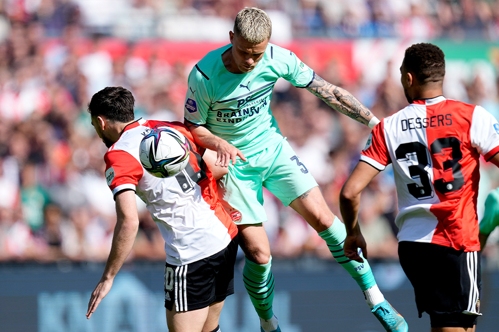 De Kuip was het decor voor deze cruciale wedstrijd in de slotfase van de competitie. De druk werd erop gezet door PSV, waardoor de ploeg al snel mocht aanleggen voor een aantal hoekschoppen, mede door Cody Gakpo die zich krachtig door de defensie van de Rotterdammers worstelde. Daarna was het Mario Götze die na een fraaie beweging de bal aan Ritsu Doan gaf. De Japanner haalde uit, maar wist de doelman niet te passeren. PSV opende het vuur op het Rotterdamse doel met pogingen van Gakpo, Doan en Eran Zahavi. Feyenoord was gewaarschuwd.