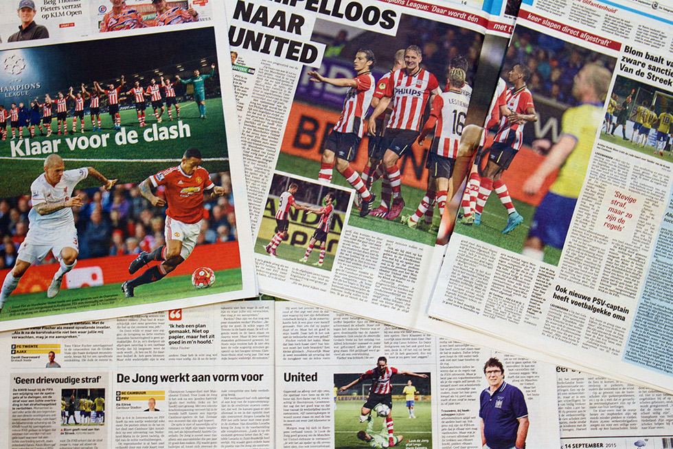 De ochtendbladen pakken wat betreft PSV uit met twee dingen. De 0-6 zege op SC Cambuur en de wedstrijd van dinsdag tegen Manchester United. ‘Rimpelloos naar United’, kopt De Telegraaf. Verslaggever Jeroen Kapteijns zag PSV, mede door de vroege rode kaart voor Van de Streek simpel van SC Cambuur winnen. Na afloop ging het echter vooral over de wedstrijd tegen United. “Op basis van wat ik tot nu toe heb gezien, vind ik ze nog niet zo denderend spelen. Ik denk dat we niet kansloos zijn”, blikt De Jong vooruit. De volledige bijdrage is hier te lezen.