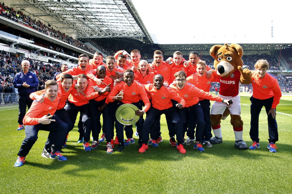 PSV won zondagmiddag in de laatste thuiswedstrijd met 6-2 van SC Cambuur. In de rust werd PSV O17 geëerd voor het behalen van het kampioenschap. Een fotoverslag.