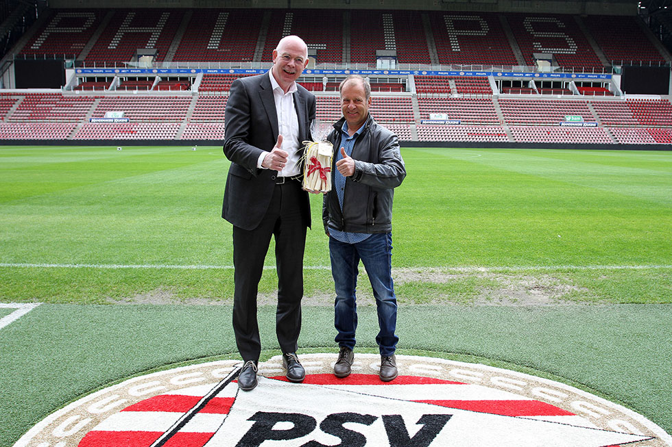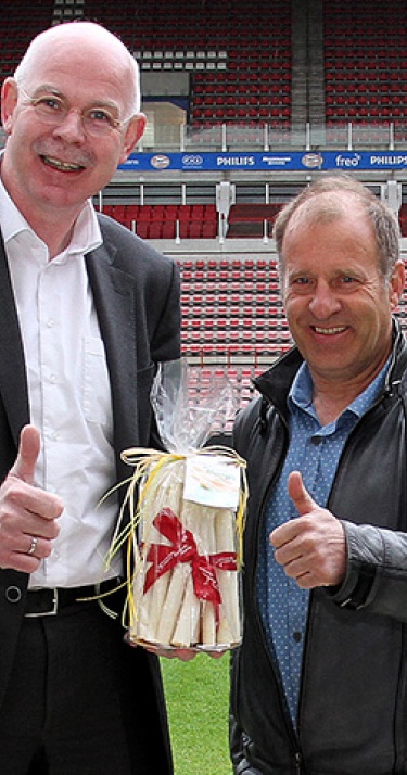 Peter van der Heijden teelt de beste asperges van Brabant. De PSV-supporter uit het Brabantse Gemert won op 23 april j.l. de verkiezing ‘Dé Lekkerste Asperge 2016’. Algemeen directeur Toon Gerbrands nam ‘het witte goud’ vrijdag namens PSV in ontvangst.