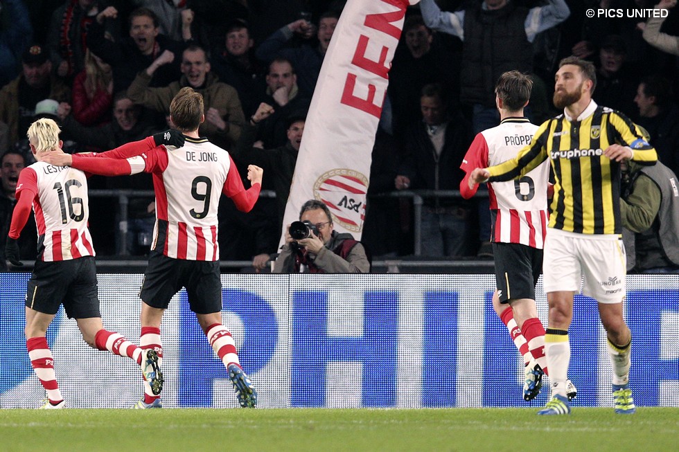PSV speelde dinsdagavond in het Philips Stadion tegen Vitesse en won met 2-0 door doelpunten van Davy Pröpper en Luuk de Jong. Een fotoverslag.