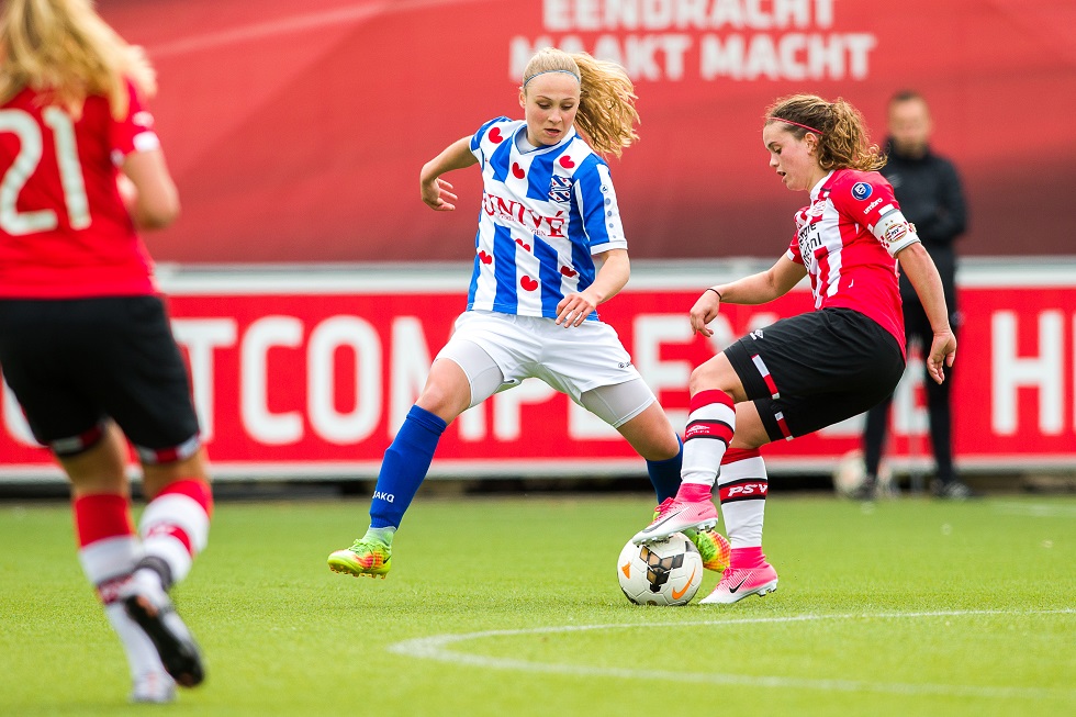 PSV Vrouwen schoot uit de startblokken waarbij Kuijpers tijdens de eerste aanval haar directe tegenstanders voorbij snelde. De voorzet op Coolen was op maat en werd bekwaam afgerond: 1-0. Daarna waren Kuijpers zelf en Lewerissa dicht bij een treffer. Na twintig minuten spelen leek het veldoverwicht te stoppen en kwam sc Heerenveen beter in de wedstrijd met een eerste serieuze kans voor Kets. Het bleef echter bij 1-0.