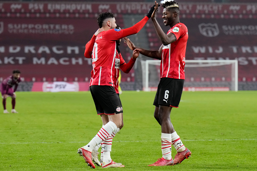 De laatste wedstrijd van 2021 werd gespeeld in een bijzonder verlicht Philips Stadion. Duizenden zitplaatsen waren verlicht met de candlebags. PSV hoopte het jaar net zo stijlvol af te sluiten als de lampen eruit zagen. Dat was wel af te lezen aan de openingsgoal van Phillipp Mwene. De rechtsback zag de ruimte om te schieten van afstand en benutte die kans ten top. Op zeer fraaie wijze schoot hij PSV op voorsprong. Een vroege openingsgoal kwam goed uit met het vizier op het winterkampioenschap.