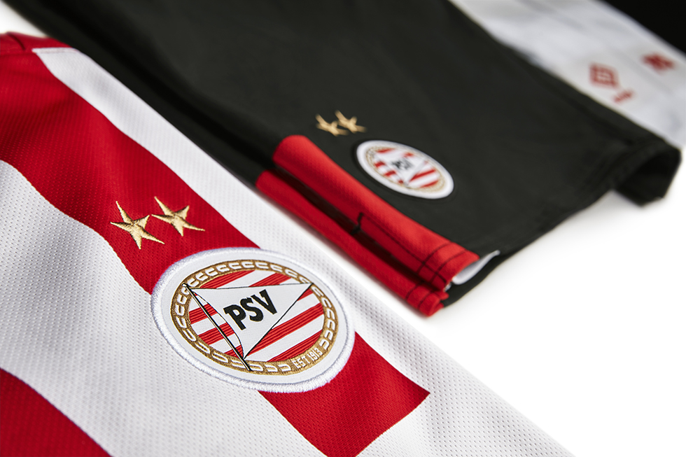 Een ander opvallend detail is verwerkt in de sokken. Die zijn wit met afwijkend gekleurde banen. Aan de bovenkant van de sokken is wel het PSV-rood verwerkt en diezelfde kleur is ook terug te zien aan de zijkant van de broek.