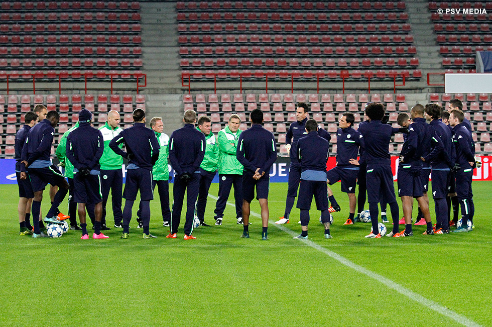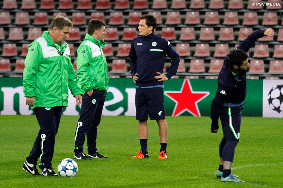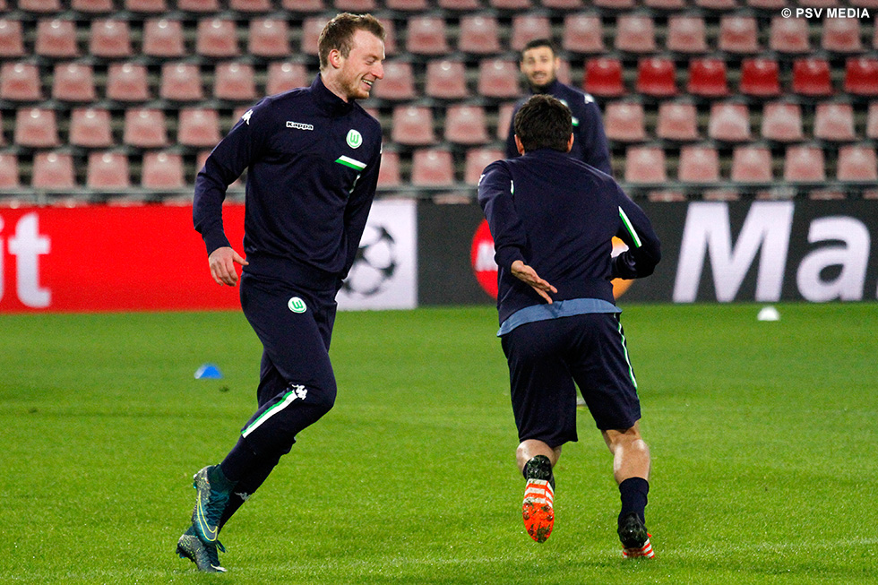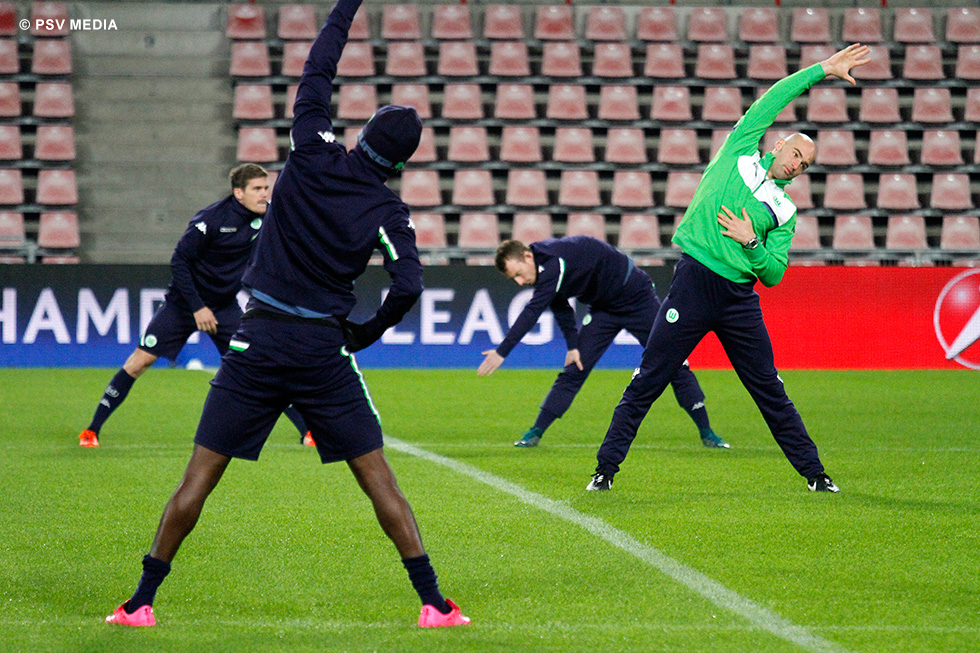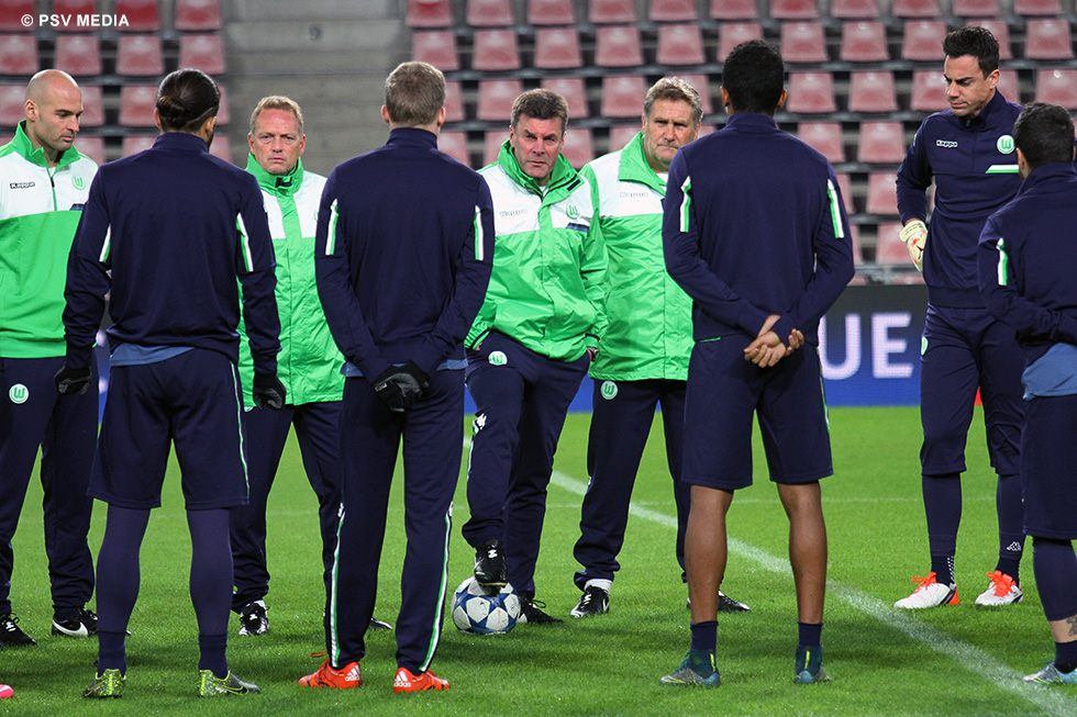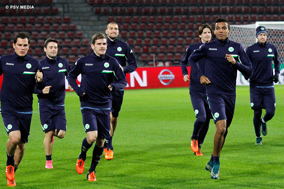 De selectie van VfL Wolfsburg werkte maandagavond een training af in het Philips Stadion. Een fotoverslag.