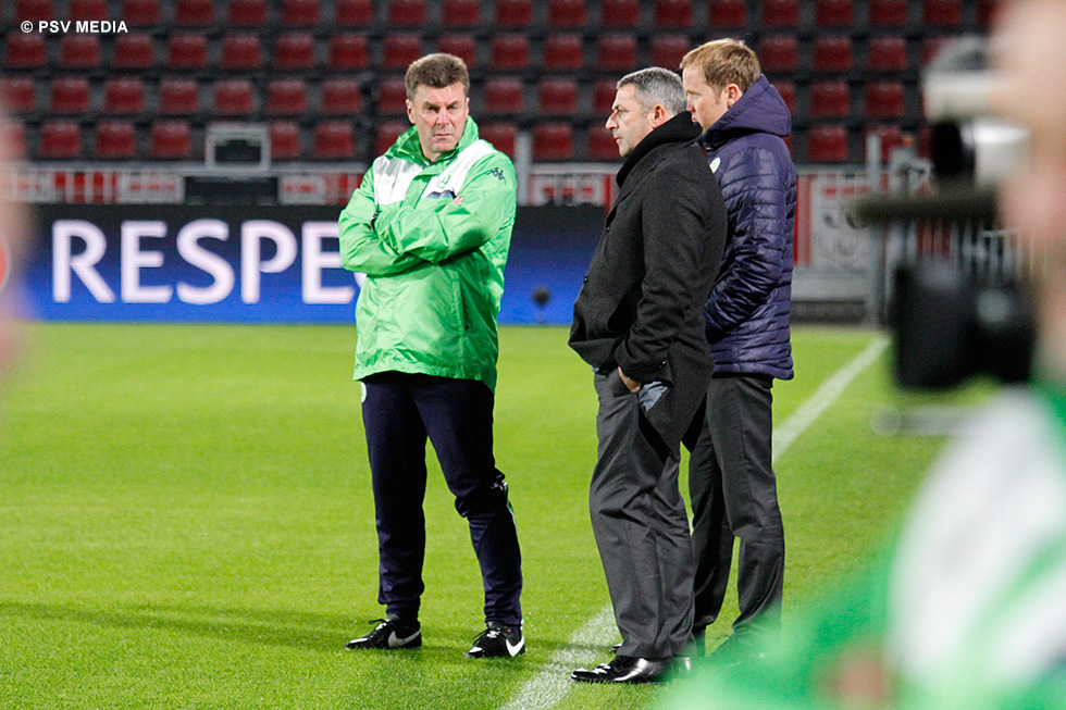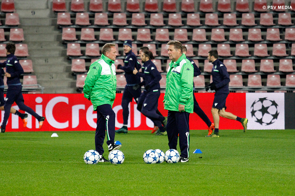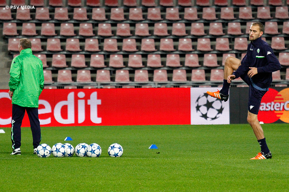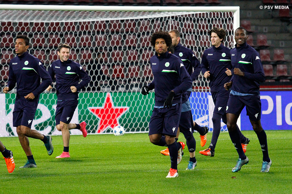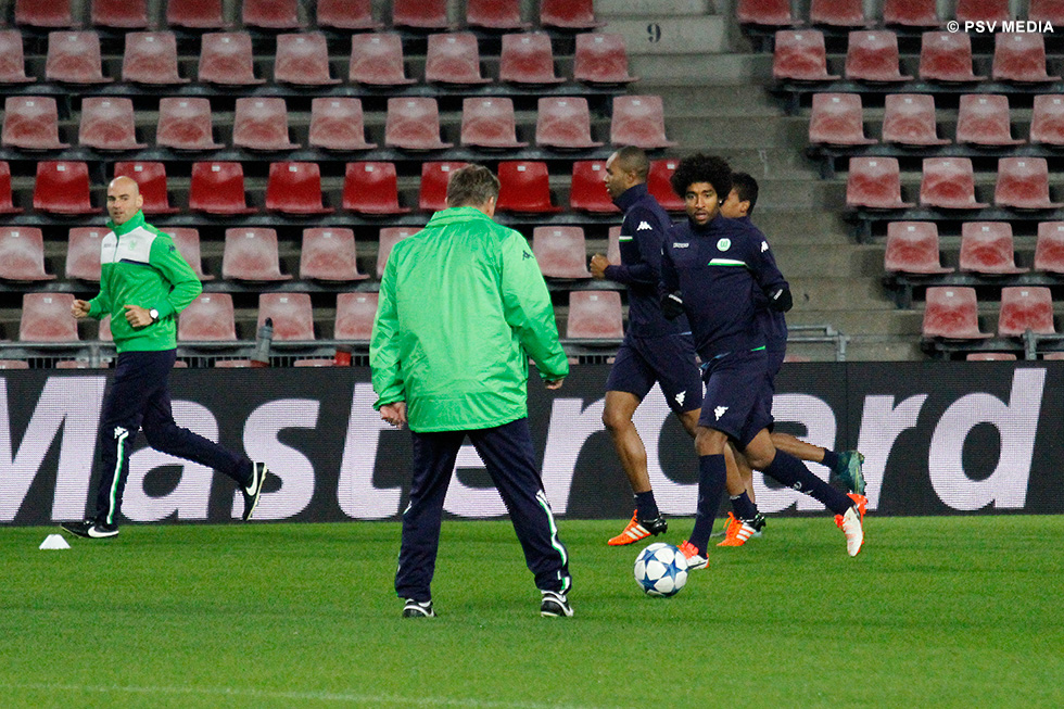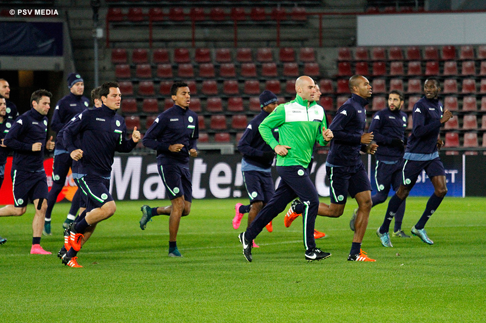 De selectie van VfL Wolfsburg werkte maandagavond een training af in het Philips Stadion. Een fotoverslag.
