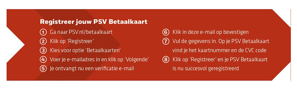 In het Philips Stadion betaal je met een PSV Betaalkaart of de geïntegreerde betaalfunctie in de (Seizoen) Club Cards. Het enige dat je moet doen is de betaalfunctie in de kaart activeren door jouw kaart te registreren en er vervolgens geld op te zetten. Dit kan eenvoudig thuis of onderweg via de PSV App of PSV.nl/betaalkaart.